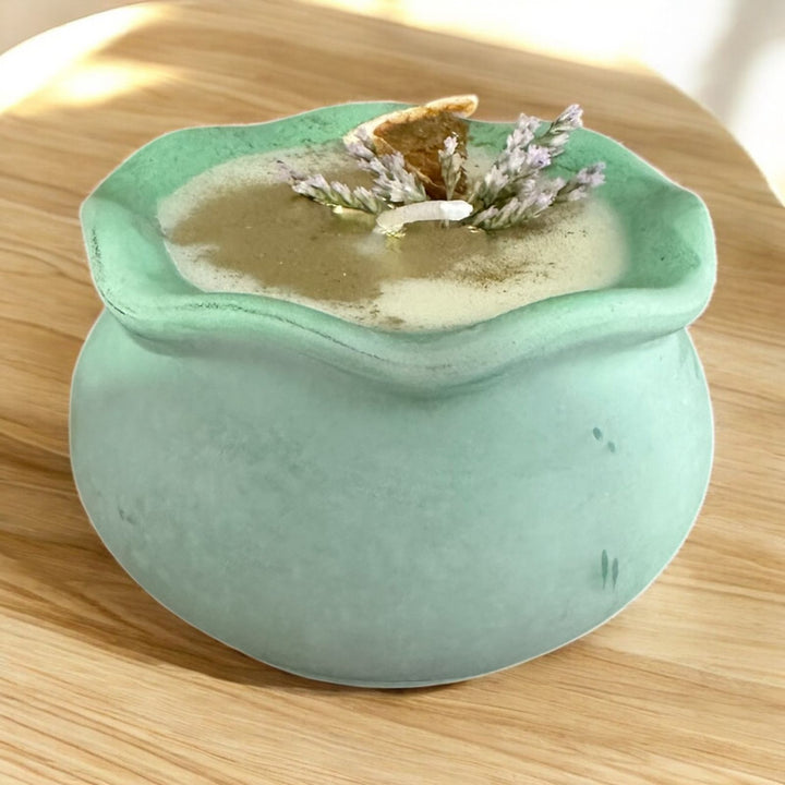 Decorada cuidadosamente con flores secas y canela, esta vela no solo ilumina, sino que transforma cualquier espacio en un refugio cálido y sofisticado.